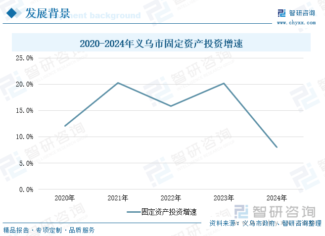 投资方面,2024年,义乌市固定资产投资比上年增加8。0%,别离高于浙江省(0。4%)和金华市(5。3%)7。6个百分点和2。7个百分点。沉点范畴投资由负转正,制制业投资增加0。2%,较前三季度(-9。7%)提高9。9个百分点;高新手艺财产投资增加5。0%,2024年期间,义乌市招引严沉财产项目70个、总投资830亿元,此中百亿项目3个、50亿元以上6个、10亿元以上22个。